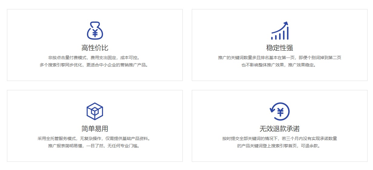 推广效果 | 至少实现100个关键词搜索引擎首页排名 流量直达官网或店铺 |