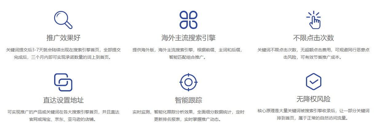 一款主打长尾词推广的SEO优化产品,让产品关键词迅速抢占各大搜索引擎首页,信息覆盖至国内众多个高权重商贸平台。流量直达 官网或淘宝、京东、亚马逊等店铺。